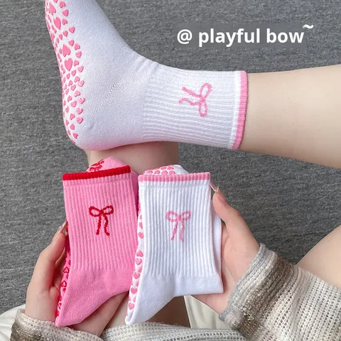 OEM/ODM المورد اللياقة البدنية المضادة للبكتيريا عدم الانزلاق الخريف الكلمة النساء طاقم بيلاتس الرياضة ربطة عنق فتاة الوردي الجوارب اليوغا